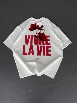Baskılı Oversize Bisiklet Yaka T-shirt - Beyaz