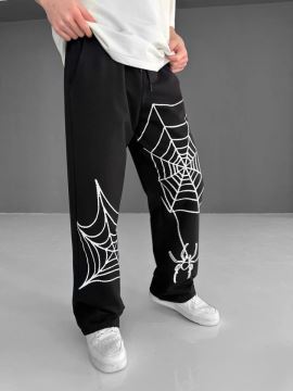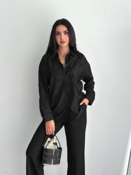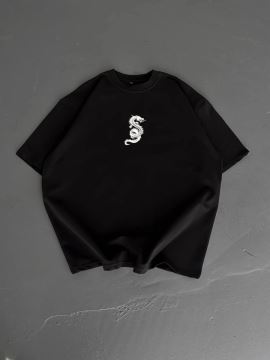 Baskılı Oversize Bisiklet Yaka T-shirt - Siyah