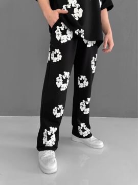Ön Ve Arka Baskılı Oversize Bisiklet Yaka T-shirt - Siyah