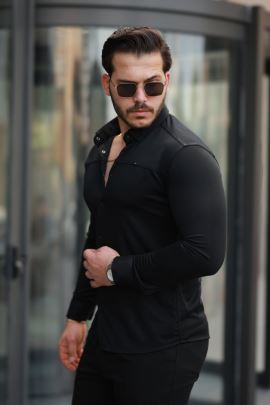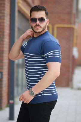 Erkek Yaka Ve Kolları çizgi Detaylı Fermuarlı Kısa Kollu T-shirt