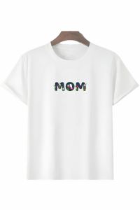Anneler Gününe Özel Tasarım Mom Çiçek Baskılı T-shirt - Beyaz