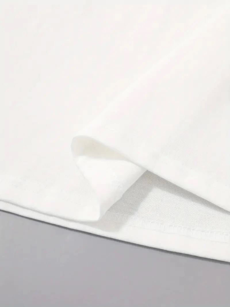 Baskılı Oversize Bisiklet Yaka T-shirt - Beyaz