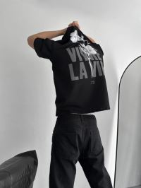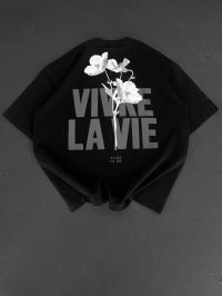 Baskılı Oversize Bisiklet Yaka T-shirt - Siyah
