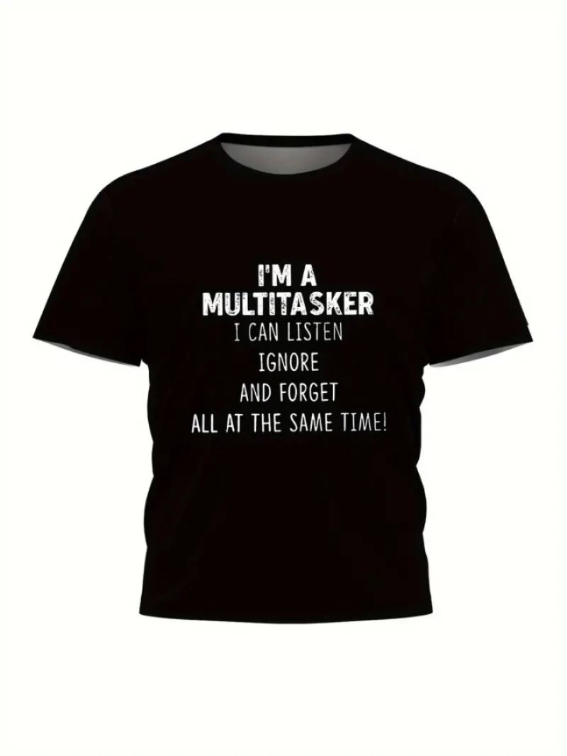 Baskılı Oversize Bisiklet Yaka T-shirt - Siyah
