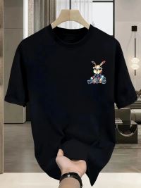 Baskılı Oversize Bisiklet Yaka T-shirt - Siyah