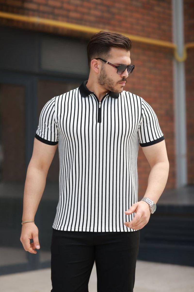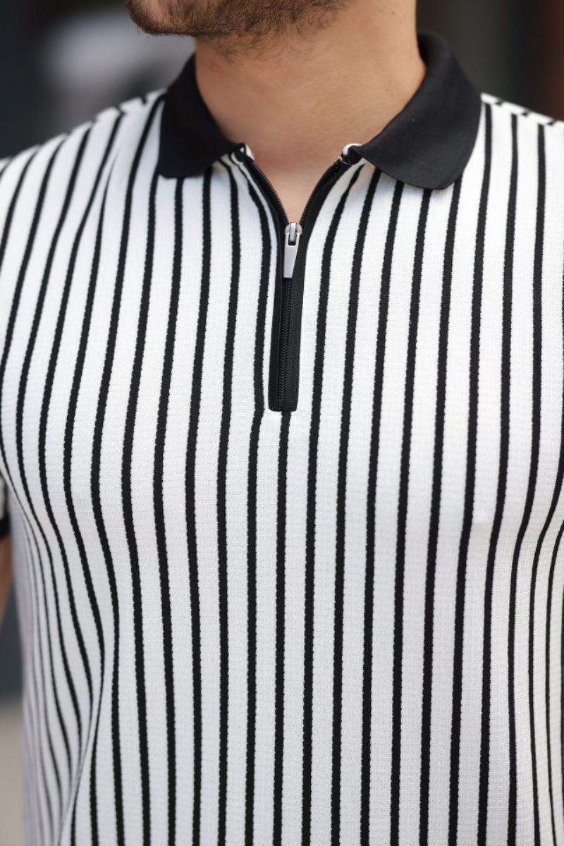 Erkek çizgili Fermuar Yakalı Kısa Kollu Tişört