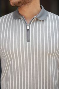 Erkek çizgili Fermuar Yakalı Kısa Kollu Tişört