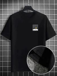 Erkek Dağ Grafikli Tişört, Yaz Için Büyük Beden Rahat T-shirt - Siyah