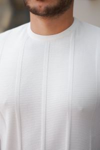 Erkek Desenli çizgi Kabartmalı Kısa Kollu Tişört