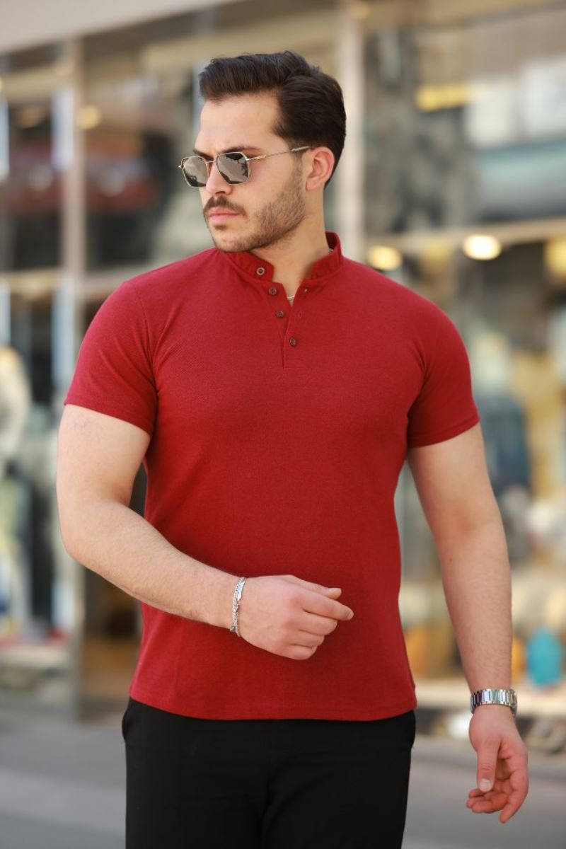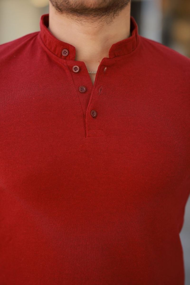 Erkek Hakim Yaka Dokuma Pamuklu Kumaş Kısa Kollu T-shirt