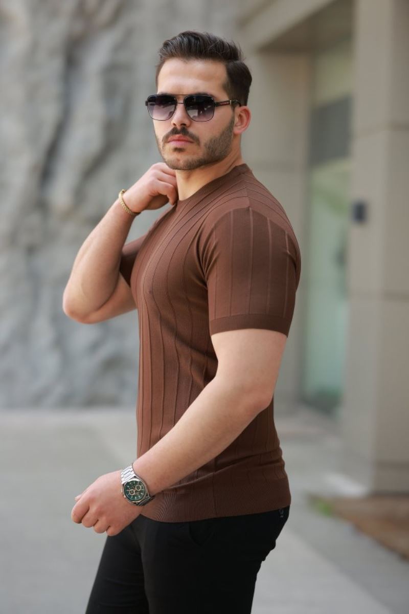 Erkek Kısa Kollu Bisiklet Yaka çizgili Triko Tişört