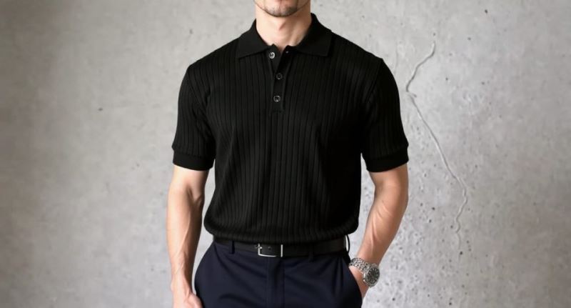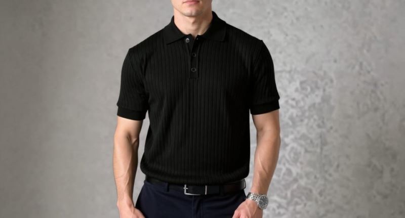 Erkek Kısa Kollu Yakalı Yakadan Düğmeli Triko Bluz