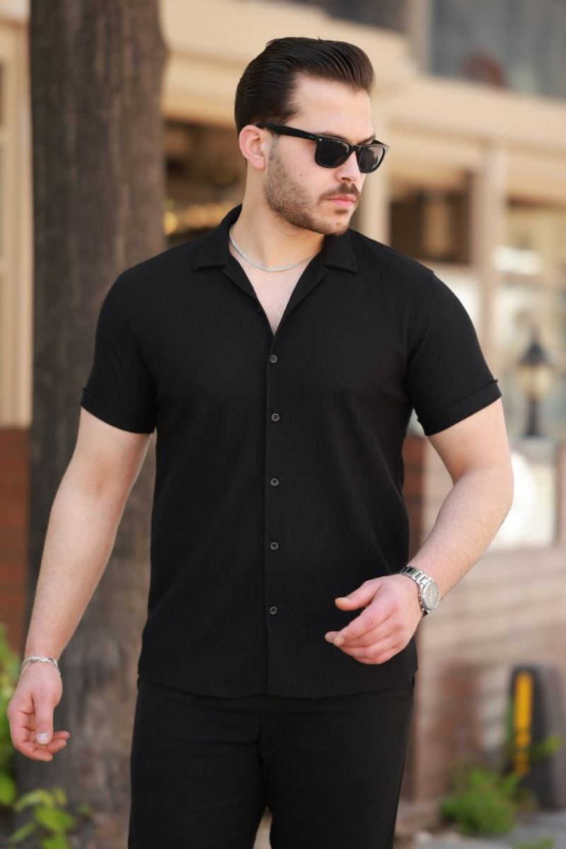 Erkek Ottoman Kumaş Apaj Yaka Kısa Kollu Gömlek