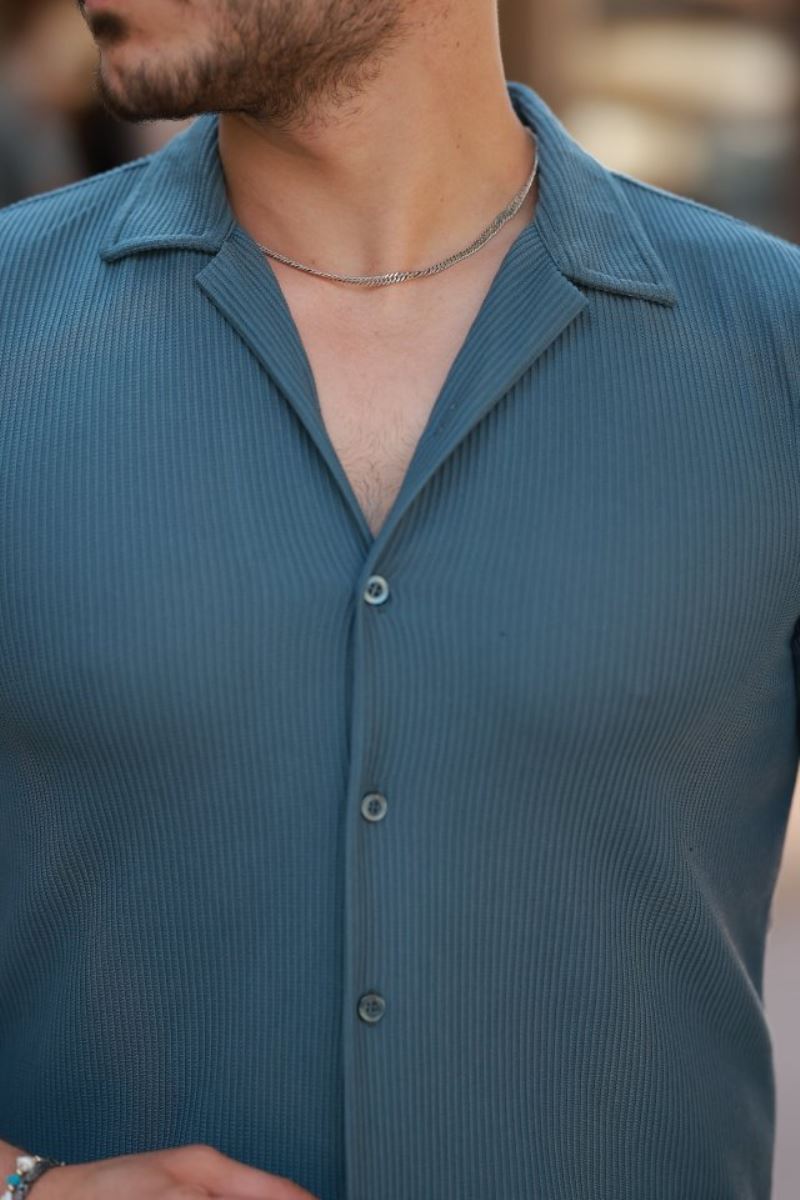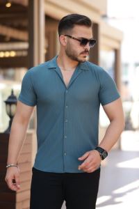 Erkek Ottoman Kumaş Apaj Yaka Kısa Kollu Gömlek