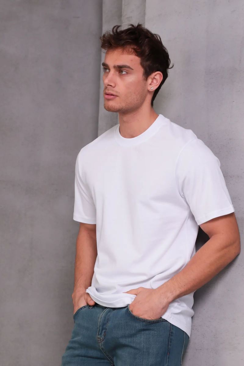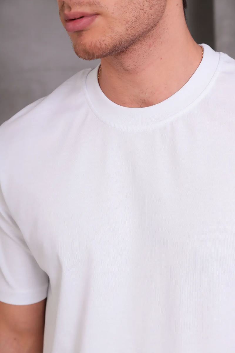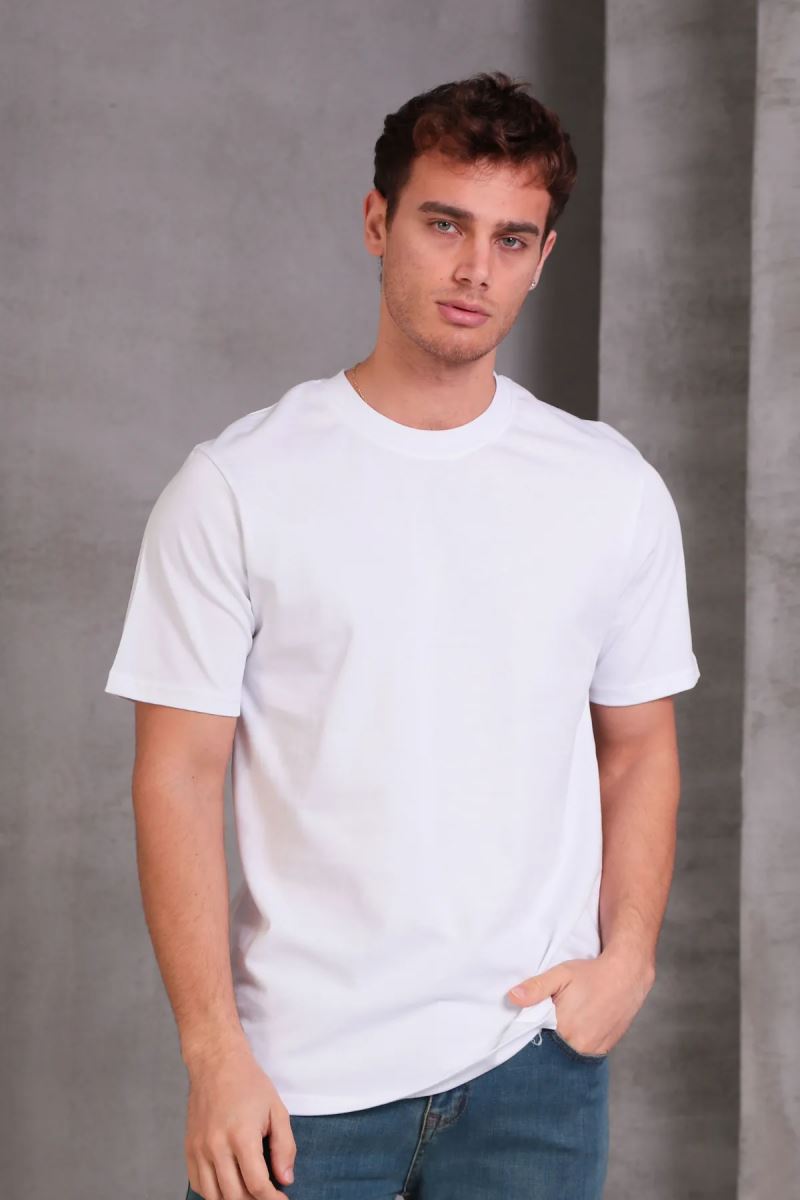 Erkek Relax Fit Bisiklet Yaka %100 Pamuk Rahat Kesim Basic Tişört