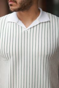 Erkek Yakalı çizgi Desenli Kısa Kollu Tişört