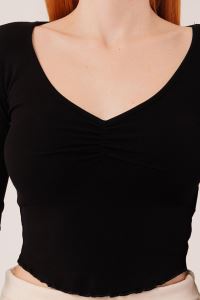 Geniş Yaka Siyah Basic Body Bluz