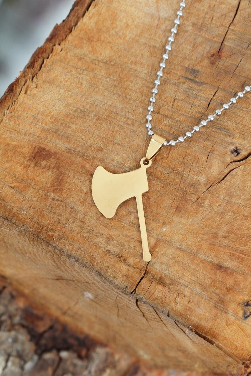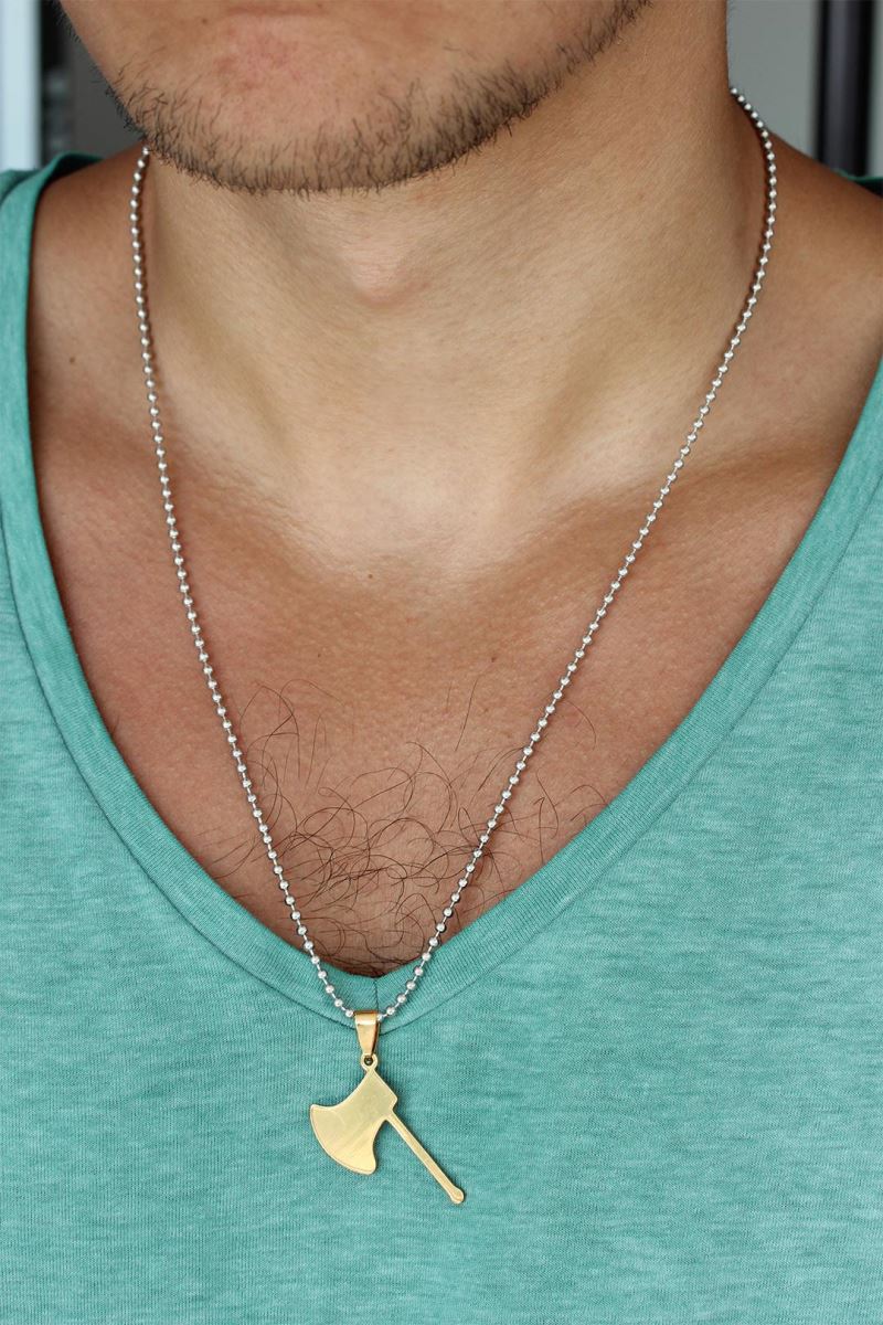 Gold Renk Metal Balta Uçlu Top Zincirli Erkek Kolye
