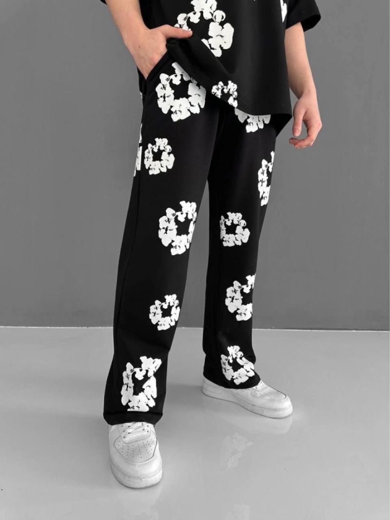 Iki İplik Kumaş Baskılı Esofman - Siyah