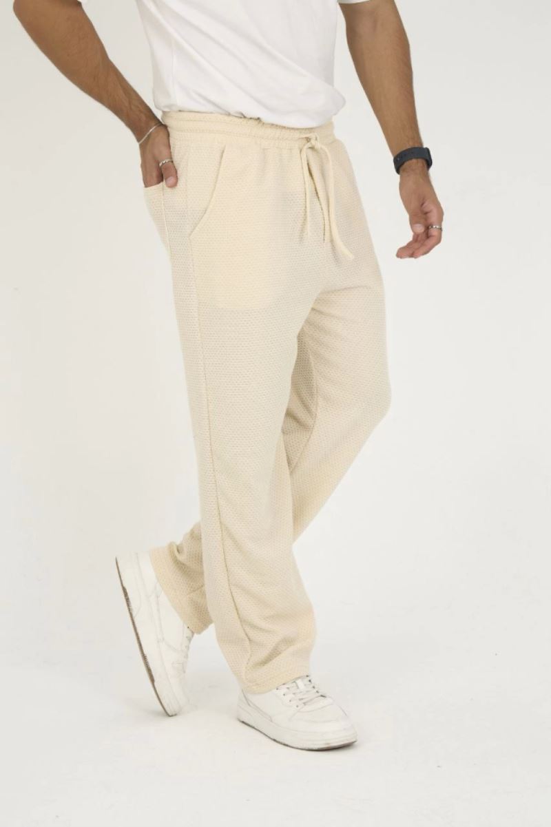 Jakar Kutu Desenli Baggy Eşofman Pantolon - Bej