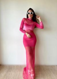 Kadın Balıkçı Yaka Transparan Dekolteli Fırsat ürün Elbise