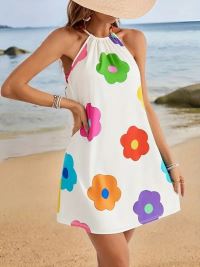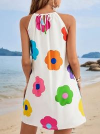 Kadın Boyundan Askılı Kolsuz çiçek Desenli Süprem Elbise