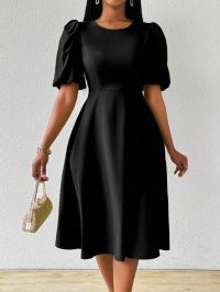 Kadın Kısa Balon Kollu Bisiklet Yaka Kiloş Janjan Krep Elbise