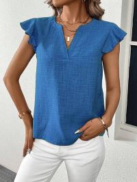 Kadın Kısa Kelebek Kollu V Yakalı Bluz