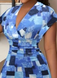 Kadın Kısa Kollu Derin V Yaka Dalgıç Midi Elbise