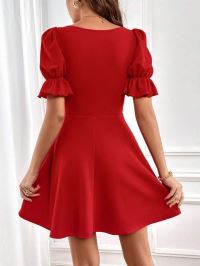 Kadın Kısa Kollu Kare Yakalı Kiloş Ithal Krep Elbise