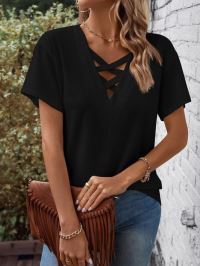 Kadın Kısa Kollu önden çapraz Detay V Yakalı Viskon Bluz