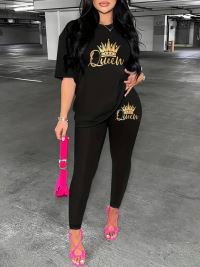 Kadın Kısa Kollu Queen Baskı Viskon Ikili Takım