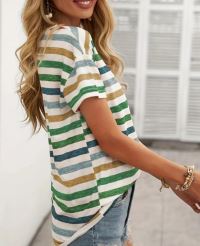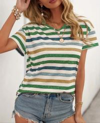 Kadın Kısa Kollu V Yaka çizgili Süprem T-shirt
