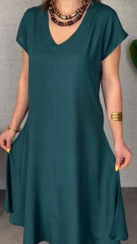 Kadın Kısa Kollu V Yaka Salaş Maxi Boy Elbise