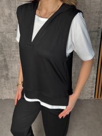 Kadın Kısa Kollu V Yakalı Kapşonlu Viskon Iki Iplik Bluz Ve Pantolon Takım