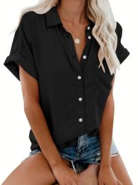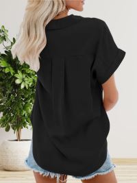 Kadın Kısa Kollu V Yakalı önden Düğmeli Dokuma Gömlek