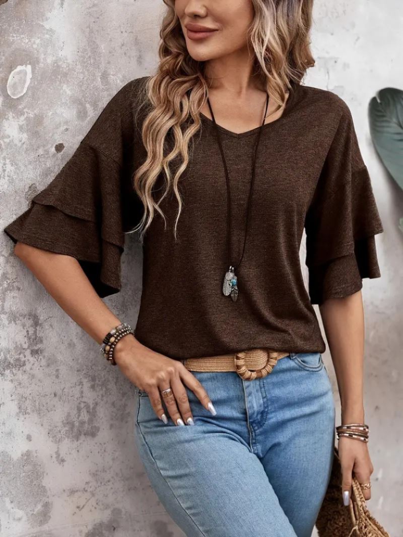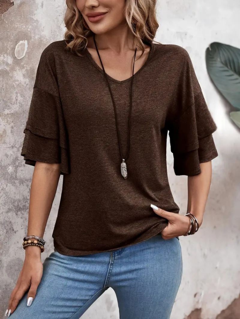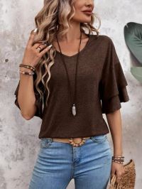 Kadın Kısa Kollu V Yakalı Viskon Bluz