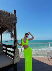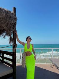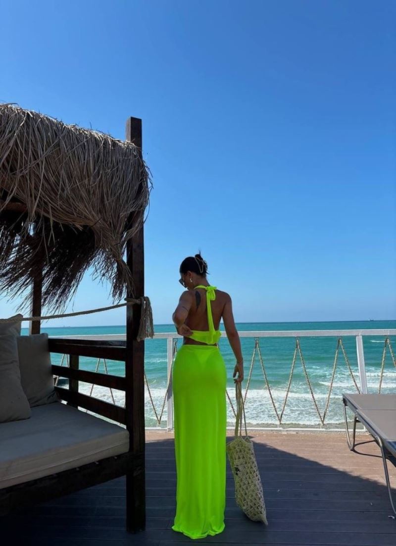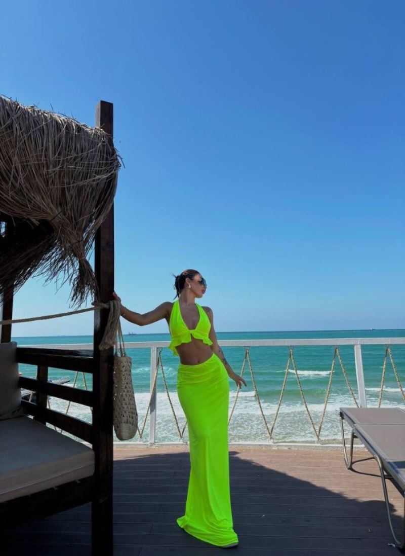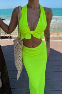 Kadın Mayo Kumaş Bağlamalı Crop Ve Maxi Boy Etek Ikili Takım