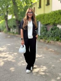 Kadın Modal Kumaş Yakası Fermuarlı şerit Detaylı Takım