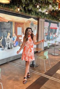 Kadın Sıfır Kollu Bisiklet Yakalı Fırfırlı Desenli Sofya Elbise