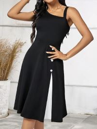 Kadın Tek Omuzu şerit Detaylı Sıfır Kol Yandan Düğme Detaylı Janjan Krep Elbise