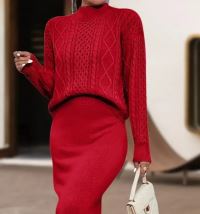Kadın Uzun Kollu Balıkçı Yaka Bluz Ve Etek Ikili Triko Takım