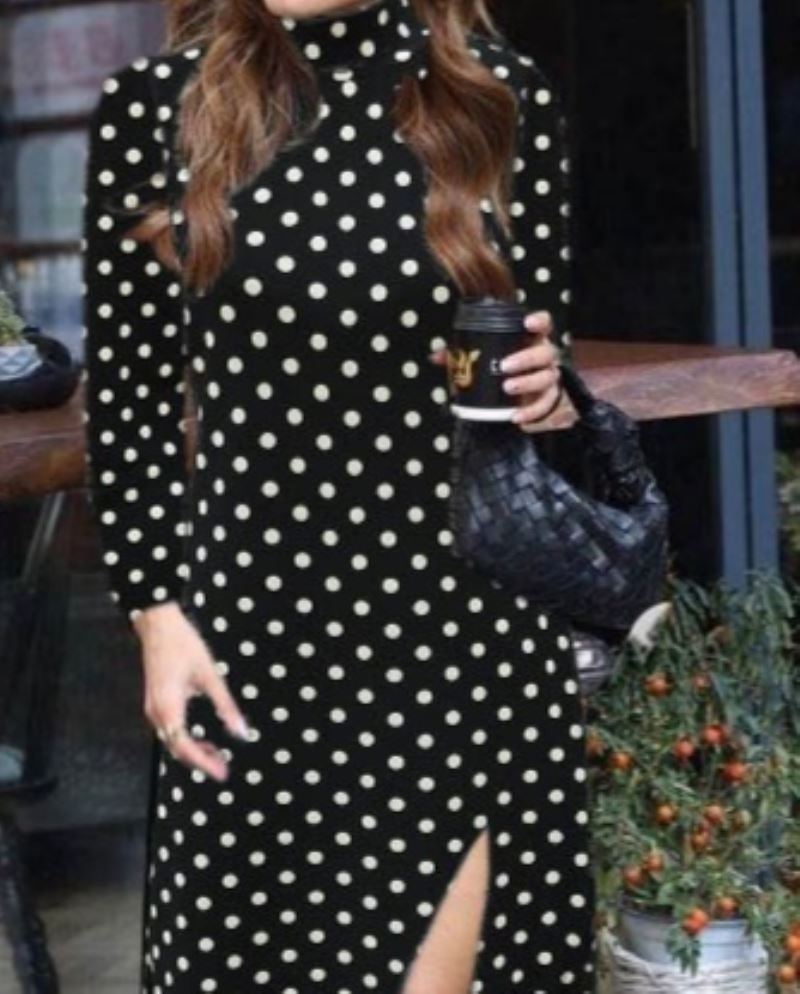 Kadın Uzun Kollu Balıkçı Yaka Yırtmaçlı Krep Elbise