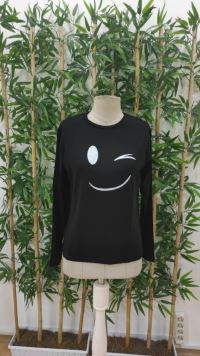 Kadın Uzun Kollu Bisiklet Yaka Gülen Yüz Desenli Viskon Bluz