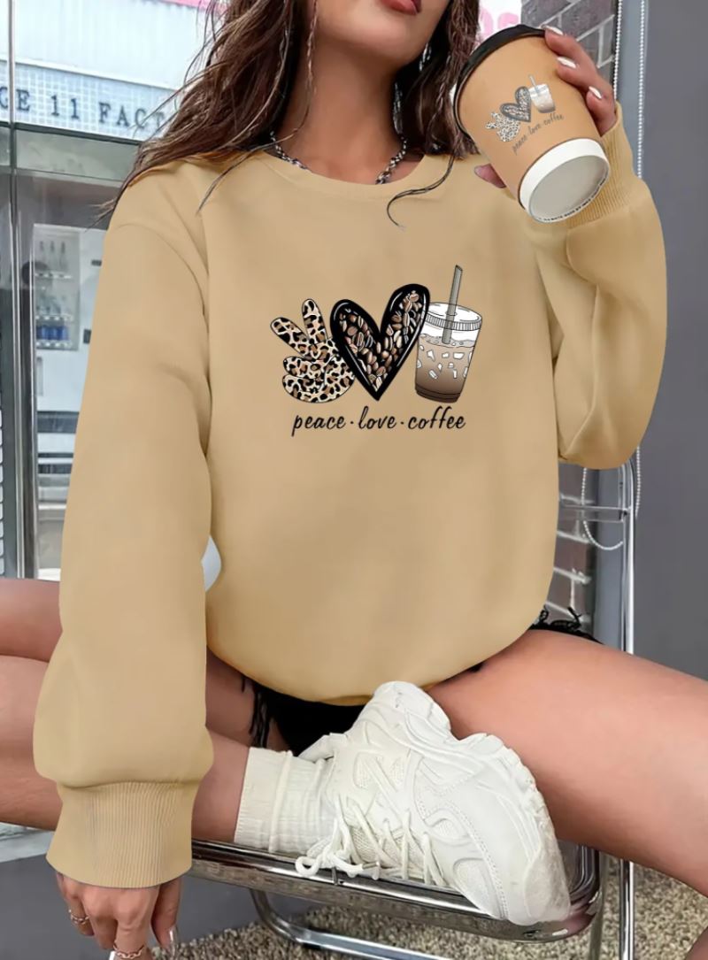 Kadın Uzun Kollu Bisiklet Yaka Kalp Desenli Viskon Iki Iplik Bluz
