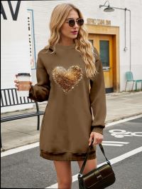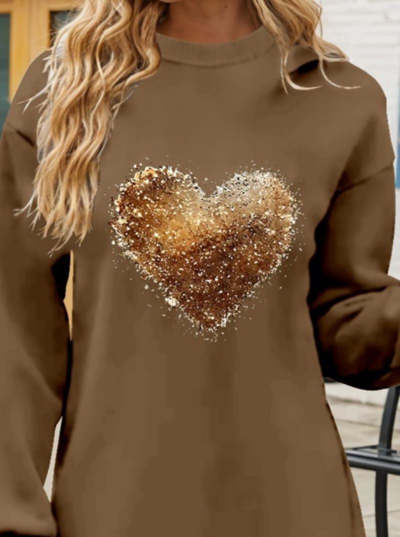 Kadın Uzun Kollu Bisiklet Yaka Kalp Desenli Viskon Iki Iplik Bluz