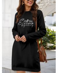 Kadın Uzun Kollu Bisiklet Yaka Kısa Viskon Iki Iplik Elbise