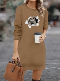 Kadın Uzun Kollu Bisiklet Yaka Kısa Viskon Iki Iplik Elbise