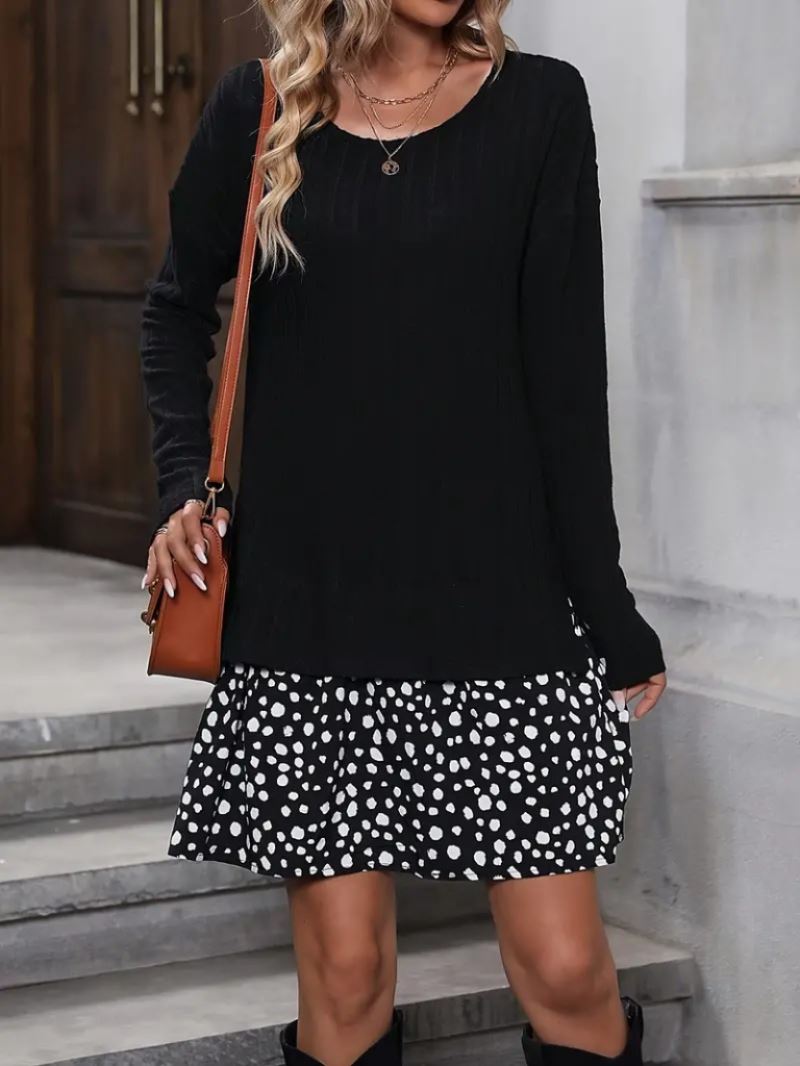 Kadın Uzun Kollu Bisiklet Yaka şardonlu Kaşkorse Bluz Ve Süprem Etek