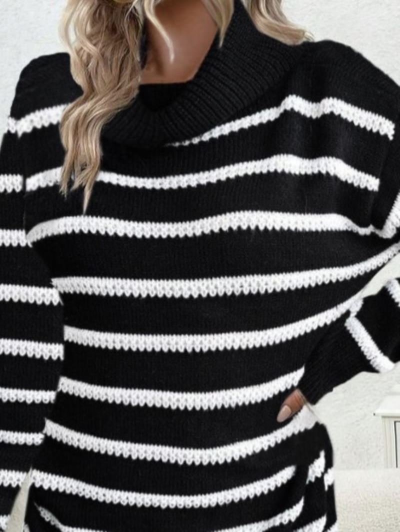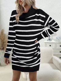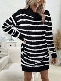 Kadın Uzun Kollu Degaje Yaka çizgili Sonya Iplik Mini Boy Triko Elbise (kemersiz)